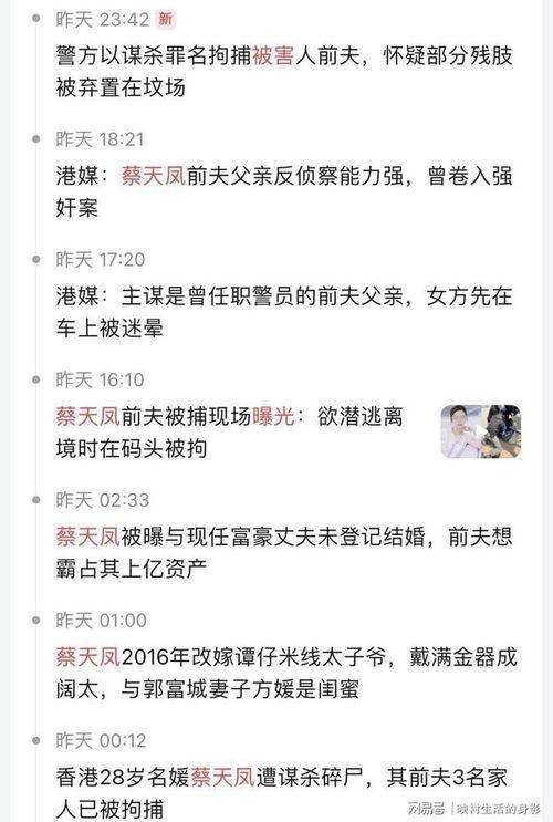 亲爱的读者们,今天我们要聊一聊一个最近闹得沸沸扬扬的案件——蔡天凤案件。这个案件牵扯到家庭、爱情、背叛和复仇,简直比电视剧还要精彩。那么,就让我们一起揭开这神秘面纱,看看背后的真相吧!